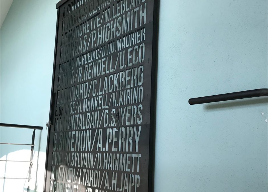 Pare vu découpé au laser finition vernis avec système de porte coulissante